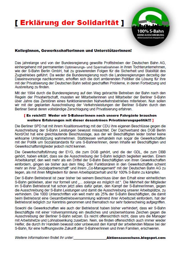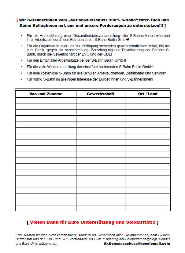 Wir dokumentieren hier einen Aufruf der Kolleginnen und Kollegen des Aktionsausschusses 100% S-Bahn: